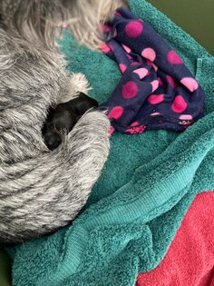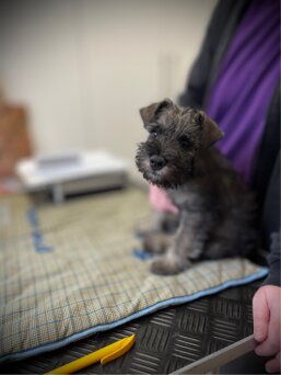 Am 01.01.2024 ist abends der K-Wurf geboren worden. Unsere Florentine hat einen gesunden, kleinen Rüden zur Welt gebracht. Es ist ihr erster Nachwuchs, aber wie auch alle anderen Mädels aus unserem Rudel macht auch Sie einen tollen Job als Mama und kümmert sich großartig um den kleinen. Der kleine ist aber inzwischen gar nicht mehr so klein und zeigt einen ordentlichen Appetit. Er nimmt kontinuierlich zu und hat seit heute die Augen auf gemacht. Wir freuen uns auf eine tolle Welpenzeit mit einem kleinen Schnauzer Jungen.