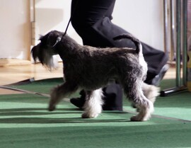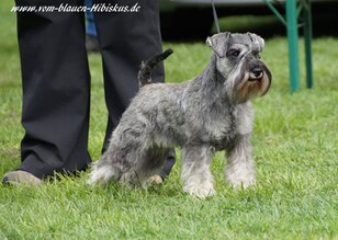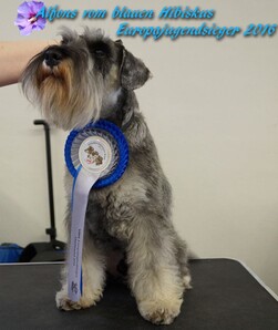 Unser Alfons vom blauen Hibiskus wurde ebenfalls mit V1 bewertet, wurde bester Rüde Zwergschnauzer pfeffer salz und gewann gegen seine Schwester das Jugend-BOB, sowie das BOB, wurde also schönster Zwergschnauzer pfeffer-salz. (Von insgesamt 10 Zwergschnauzern pfeffer salz)