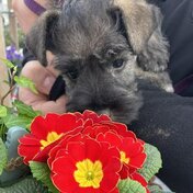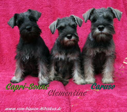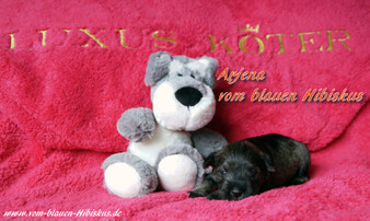 Die Zeit schreitet schnell voran, die Kleinen sind nun bereits 11 Wochen alt, sind schon sehr erkennbare Schnauzer geworden, nicht nur optisch auch in Ihrem ganzen Auftreten, Gestern hat auch Liselotte Ihre Familie gefunden, sodaß wir nun uns voll auf die letzten zwei Wochen mit unseren "L`s" konzentrieren können. Hier noch ein Bild von unserer kleinen Liselotte (Lotti).