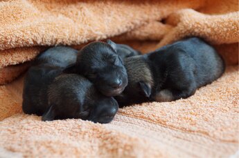 Unser H-Wurf ist am 01.04.2022 zur Welt gekommen. Unsere Arjena hat die Geburt ihrer 3 Welpen sehr gut gemeistert. Es sind ein Rüde und 2 Hündinnen: Heribert, Henriette und Helfrieda. Arjena kümmert sich ganz toll um die kleinen und sie danken es mit guter Gewichtszunahme. Auch Gisbert nimmt gut und stetig zu. Wir haben sehr viel Spaß mit den Hundebabys.